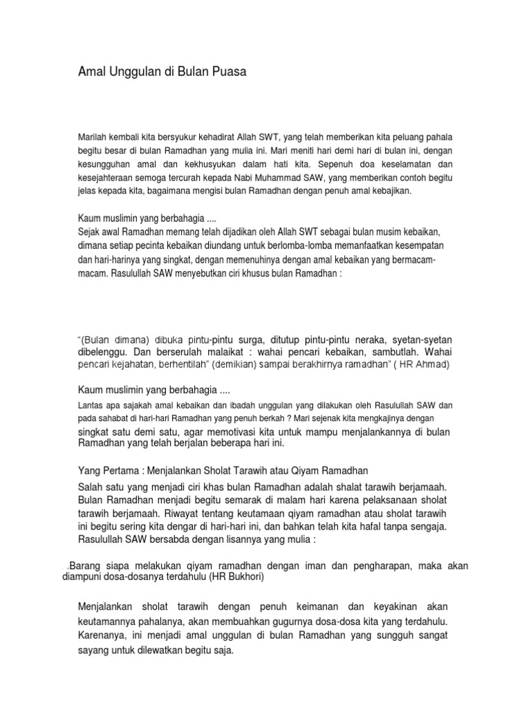 Ahsanul Amal from img.dokumen.tips Jul 30, 2013 · dan apabila malam itu digunakan untuk ibadah kepada allah swt, maka ia akan mendapatkan pahala berlibat ganda satu berbanding seribu amal kebajikan (ibadah) yang dilakukan di selain malam lailatul qadar. Uu nomor 20 tahun 2003 tentang sistim pendidikan nasional 2. Allah swt memberikan petunjuk kepada umat manusia bagaimana menjadi insan kamil atau pemeluk agama islam yang kafah atau sempurna. Amal kebajikan dalam rangka menyiapkan generasi emas indonesia di masa depan.